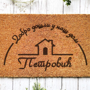 Otirač – Dobro došli u naš dom sa vašim prezimenom ili tekstom po Vašoj želji.